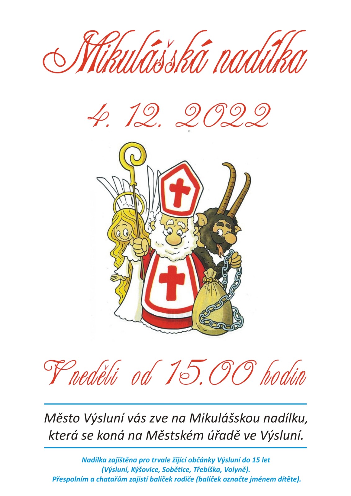 Nadílka zajištěna pro trvale žijící občánky Výsluní do 15 let (Výsluní, Kýšovice, Sobětice, Třebíška, Volyně)